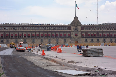 In an earlier post I wrote that Mexico's vast, central square, the Zócalo, was closed off with barricades while the plaza was being repaved and the drainage improved.The Zócalo a couple weeks ago