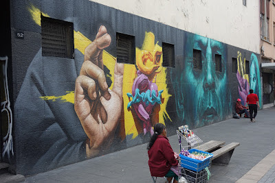 When I was in the historic center of the city I was walking along Regina Street which in recent years has been pedestrianized, and is now lined with restaurants, cafes and bars. I came upon this painting, on the wall of a children's playground, which is a parody of Diego Rivera's famous mural "Sunday Afternoon in the Alameda Central".